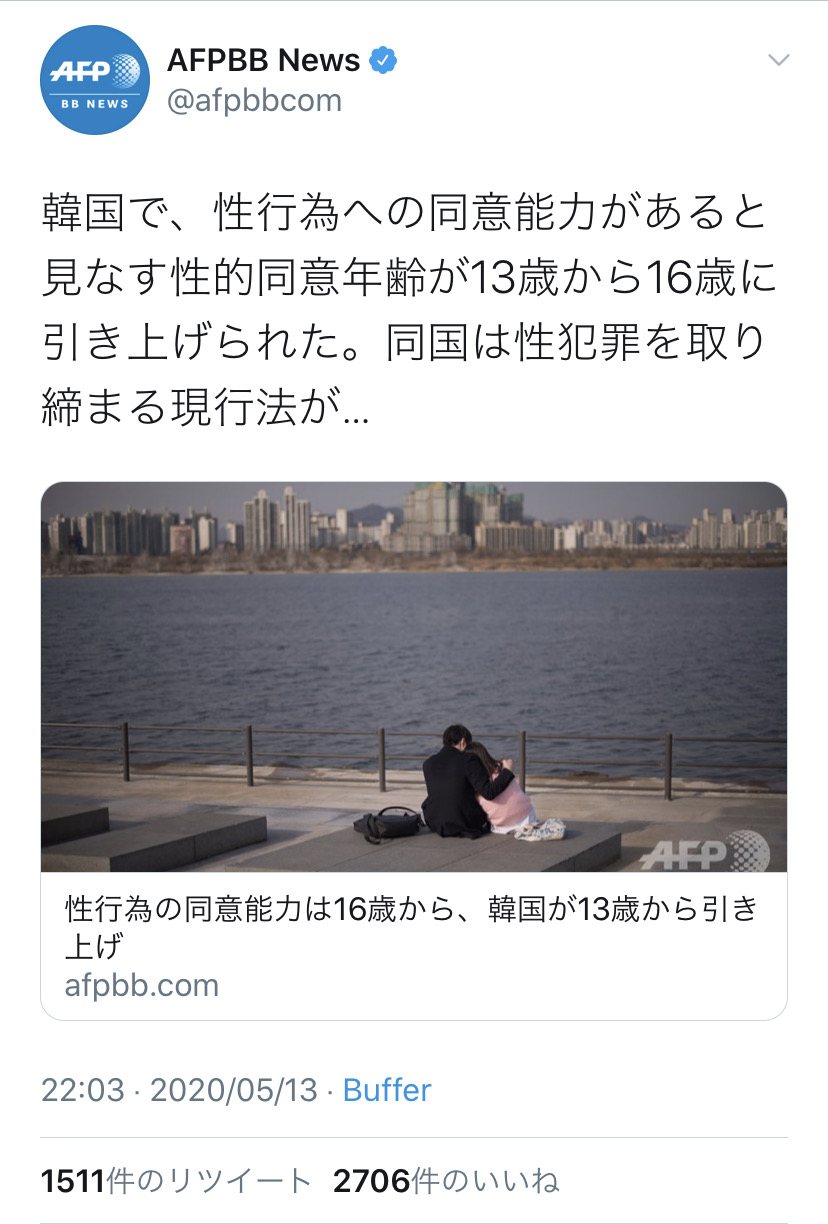 韓国、性行為への同意能力があると見なすセックス同意年齢を13歳から16歳に引き上げられてネトウヨ大爆笑www