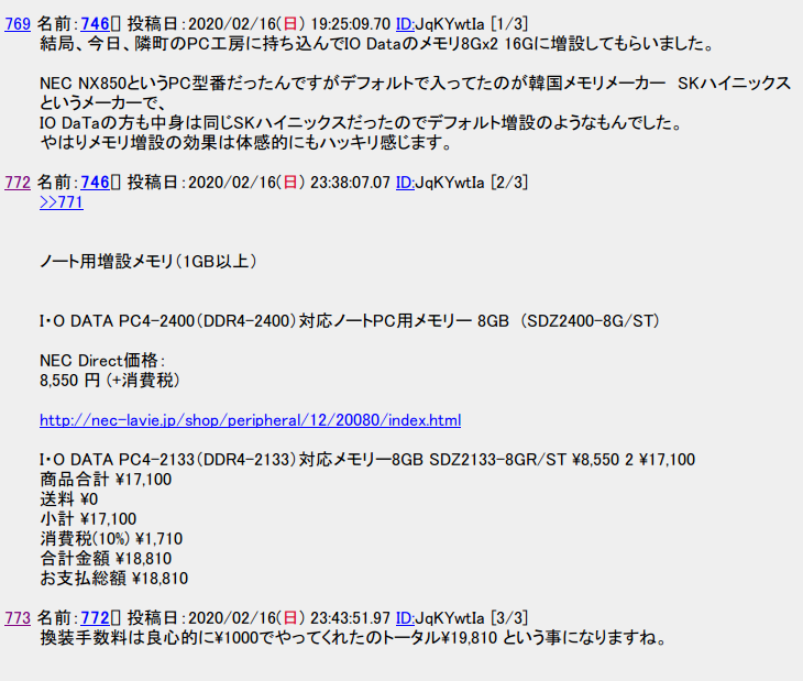 【情弱搾取】8GB2枚のメモリ増設に\20000近くも払ってしまった人が発見される