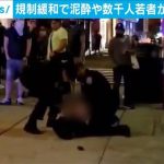 ニューヨークのバーから警察官2人が男性を連行していきます。次の瞬間、体を持ち上げて地面にたたき付けました。現地メディアは、男性は泥酔していて身分証明書の提示を拒んで暴れたため拘束されたと伝えています。一方、南部のフロリダ州では大規模な野外パーティーが週末に夜通しで開かれ、3000人もの若者が集まりました。参加者の一部が出動した警察官にペットボトルを投げ付けたり車の中から銃を向ける騒ぎなどを起こし、武器の違法所持などの容疑で男2人が逮捕されました。経済活動の再開に向けた動きは全米50州すべてに広がっていますが、気の緩みが感染の再拡大を招くという懸念も出ています。