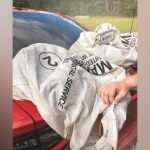 道路を走行していると、前を走っていた車が突然ハンドルを切り、道路の真ん中に置いてあった大きなごみ袋のようなものをよけるのが見えた。しかしシャンツさん一家の車は間に合わず、袋をひいてしまった。
