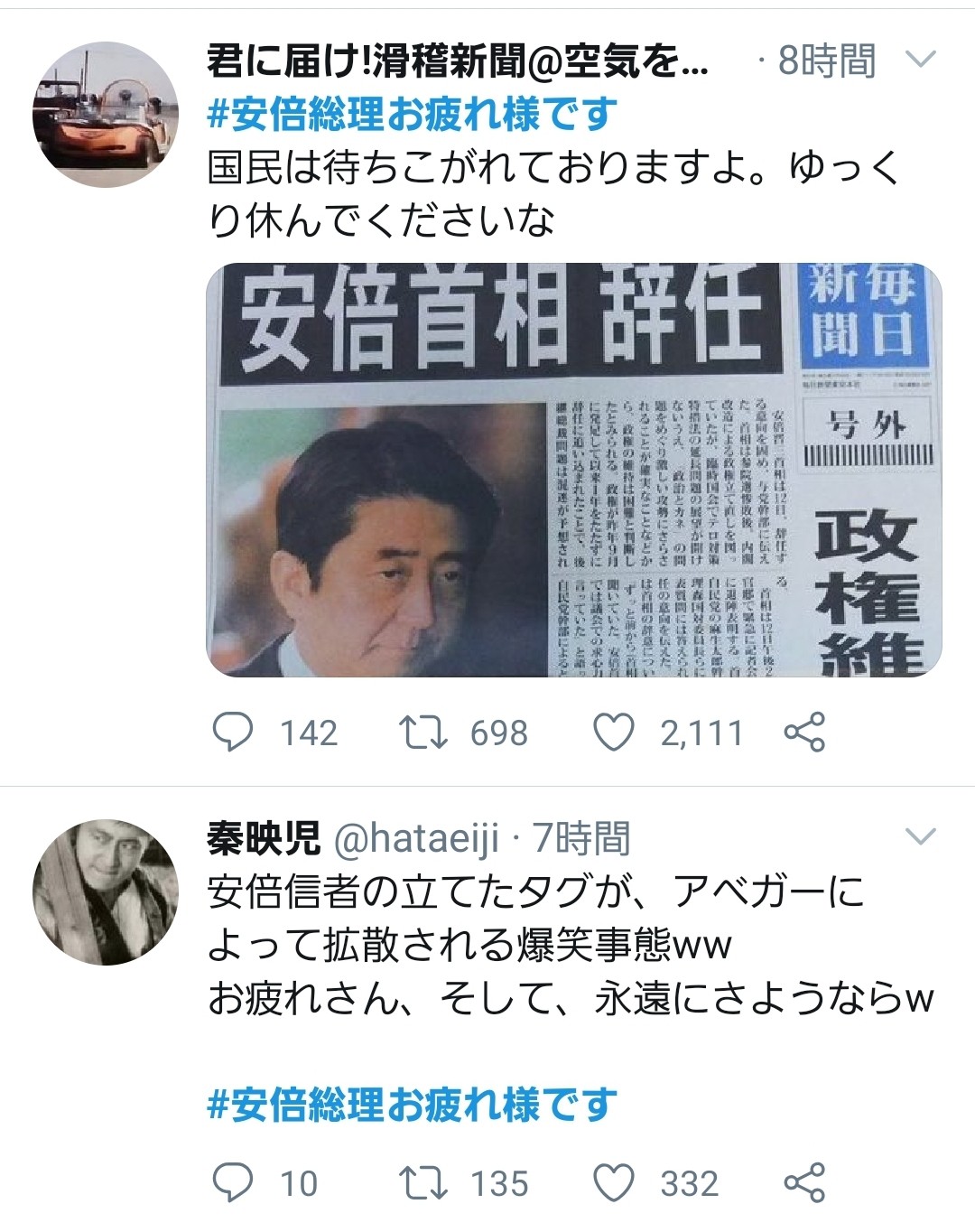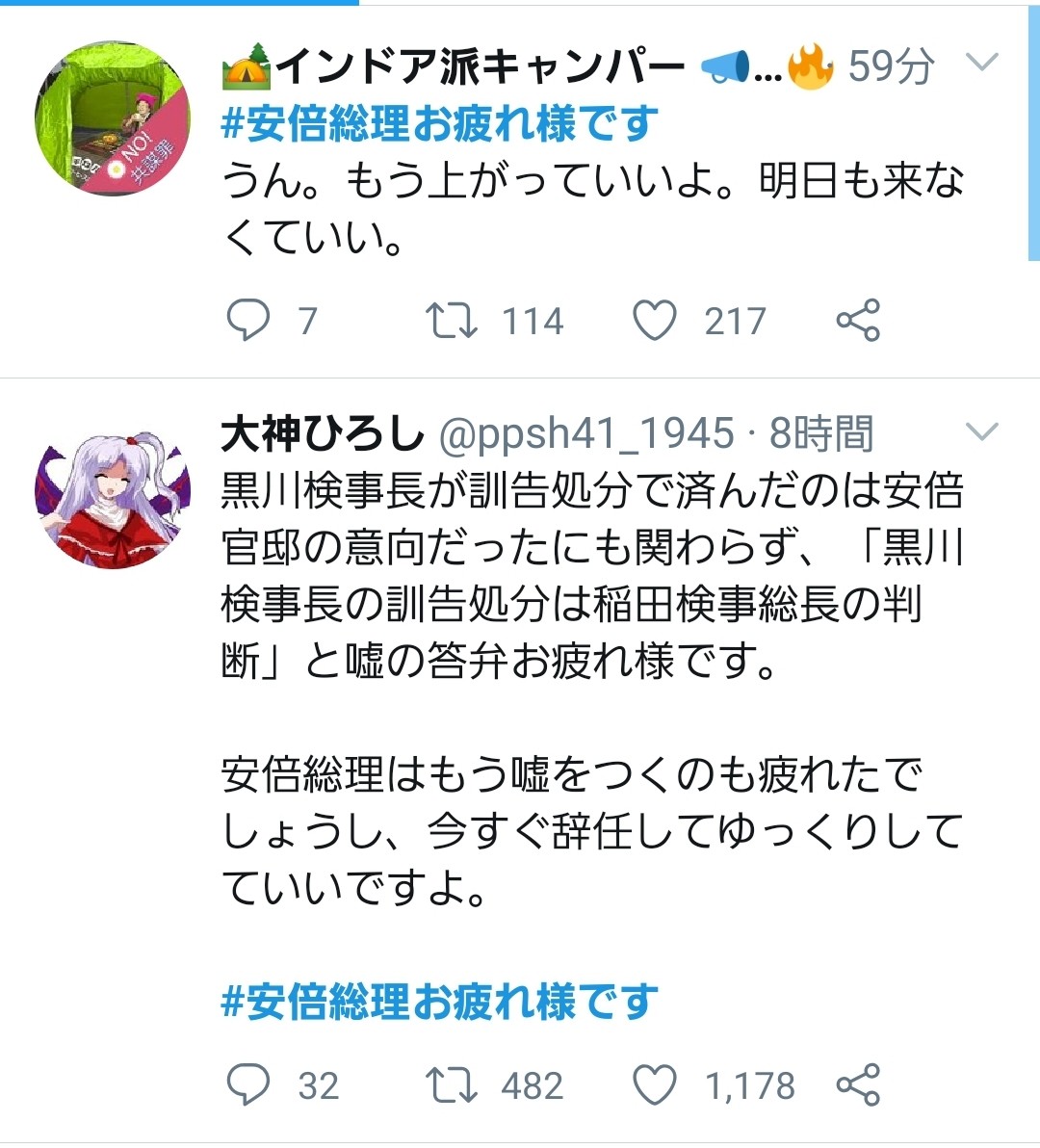 【悲報】安倍信者「総理に#お疲れ様って言え!」→違う意味で利用されトレンド入りしてしまう…
