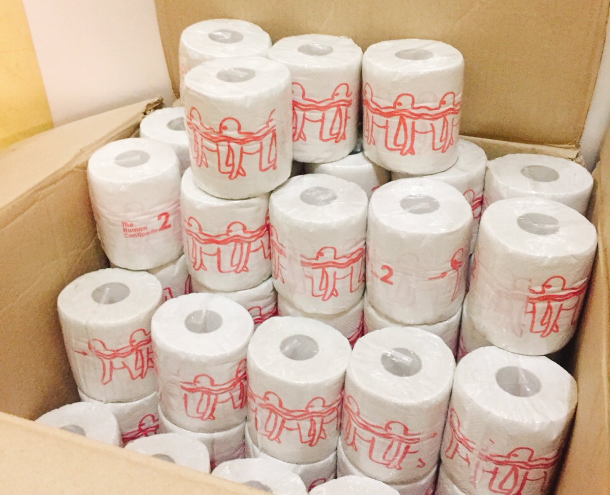 映画「ムカデ人間」が神対応。売れ残っているムカデ人間模様トイレットペーパーを配布