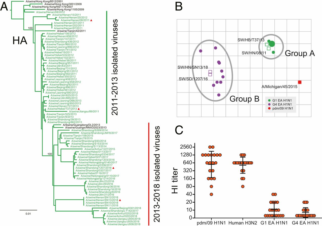 これを分析した。その結果、従来のインフルエンザウイルスとは異なる特徴を持つ新種のウイルスが確認された。「G4 EA H1N1」と命名されたこのウイルスは、2009年前の世界を席巻したA型インフルエンザウイルスと北米で発生した
