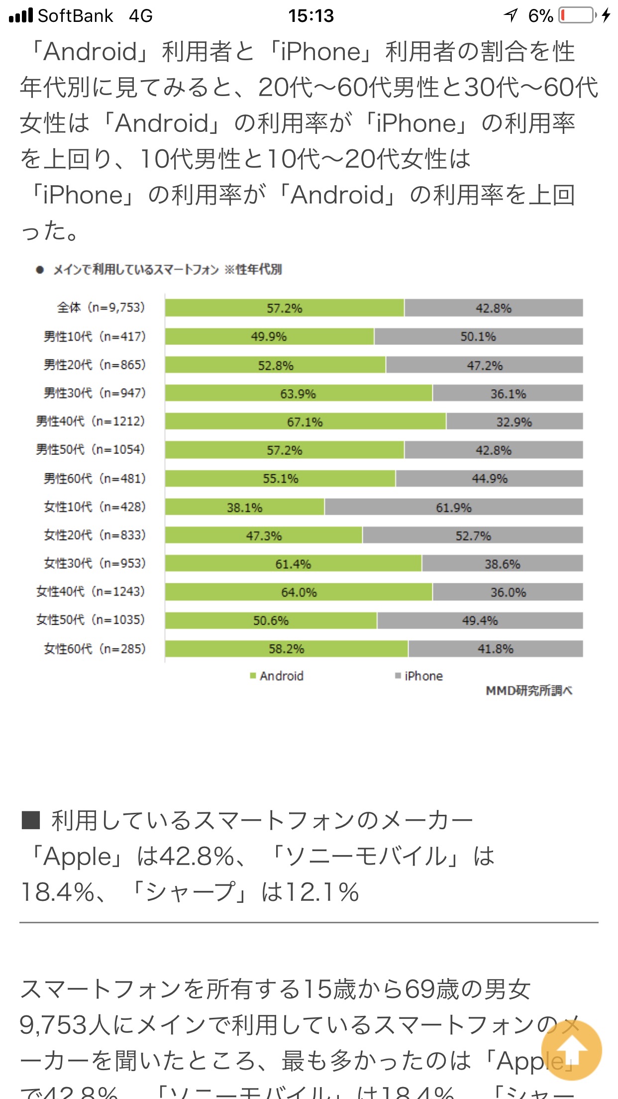 20代 アンドロイド使ってる 男52.8% 女47.3% 安いスマホ使う貧乏人が激増