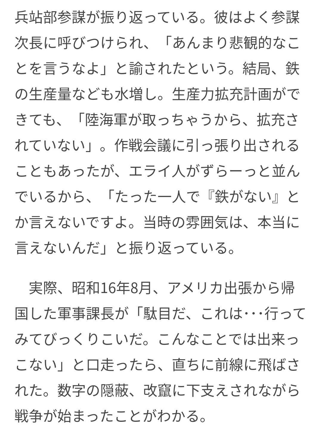 【悲報】「鉄や油の生産が足りない なんて言えない。対米開戦という結論や要求に合わせて統計や数字の改竄捏造が当たり前になっていた」