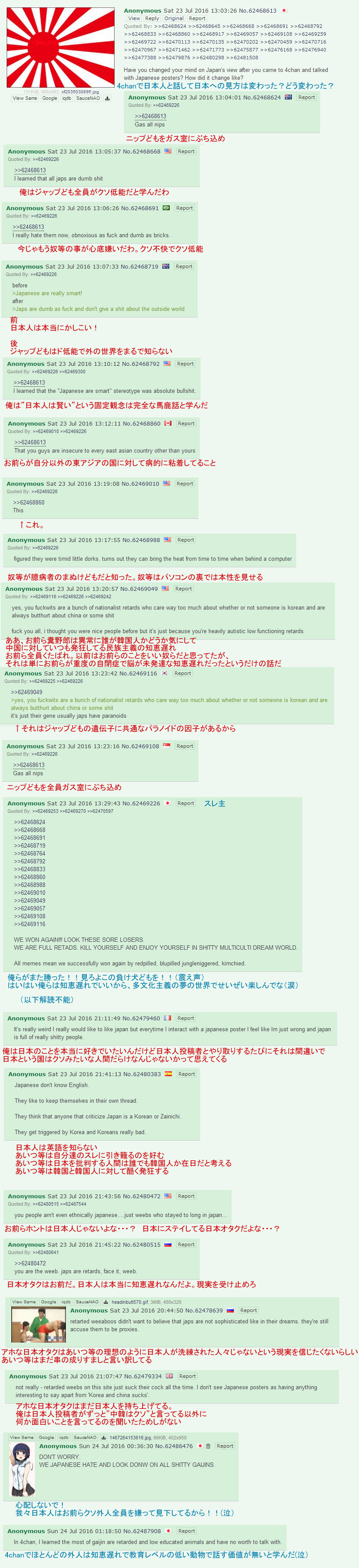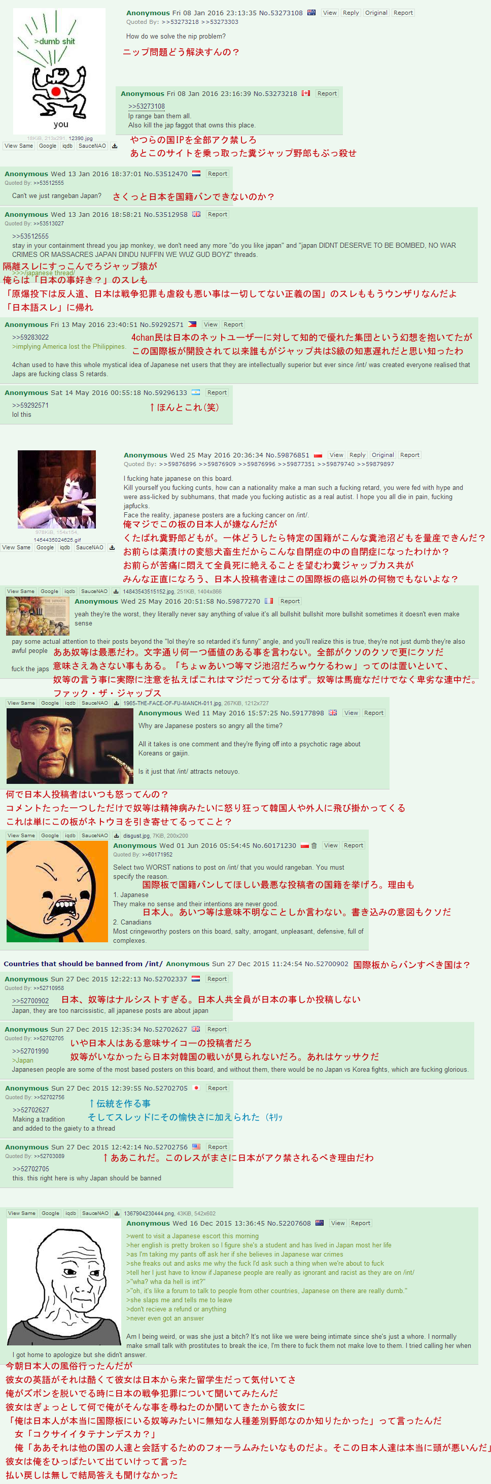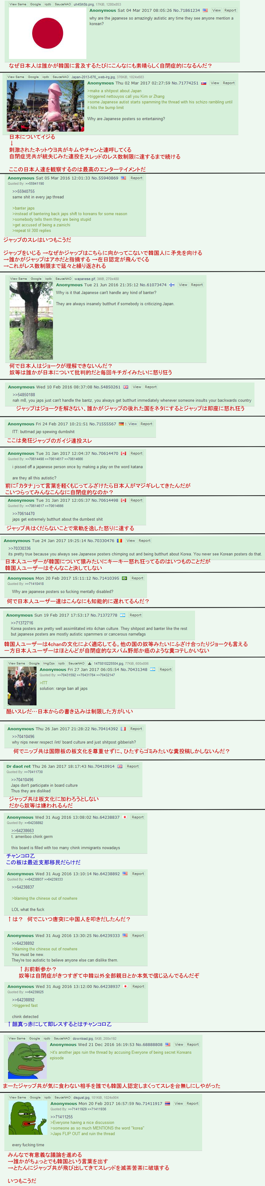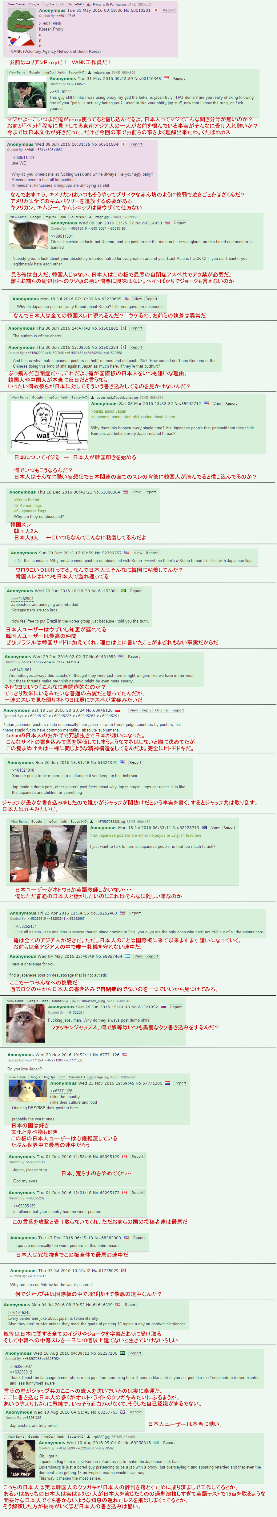 - 実際4chan覗くとほんまに書き込んでる日本ユーザーがほぼヤバめのネトウヨなんやけど