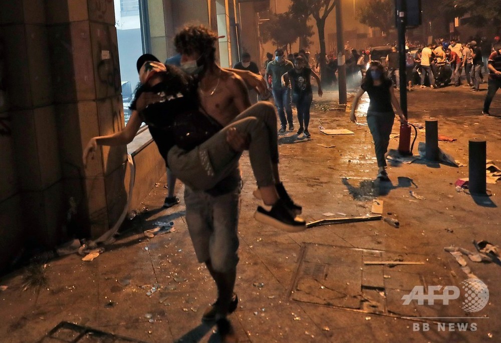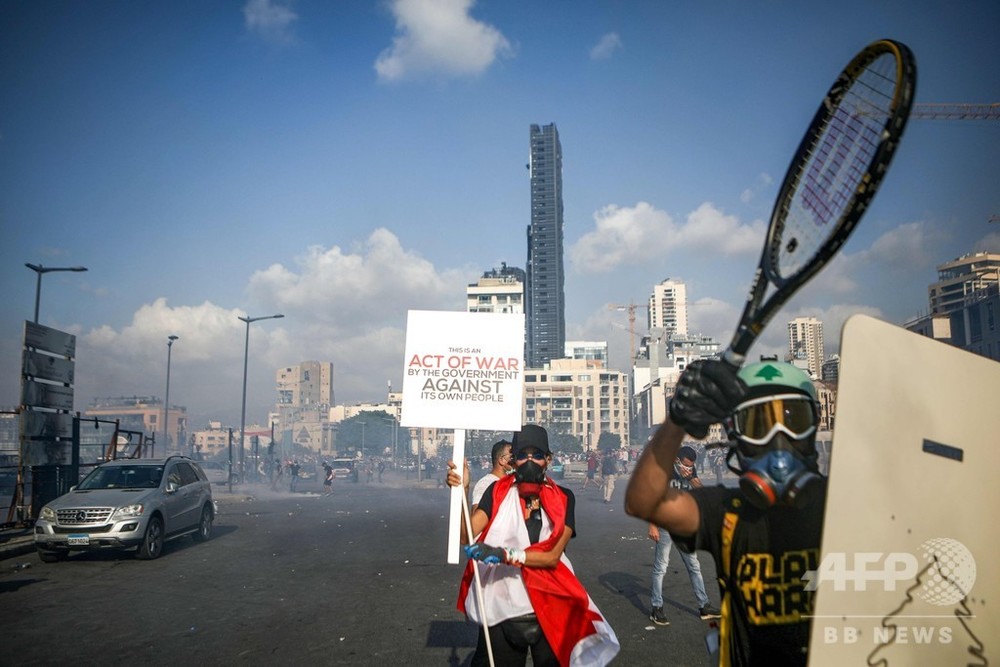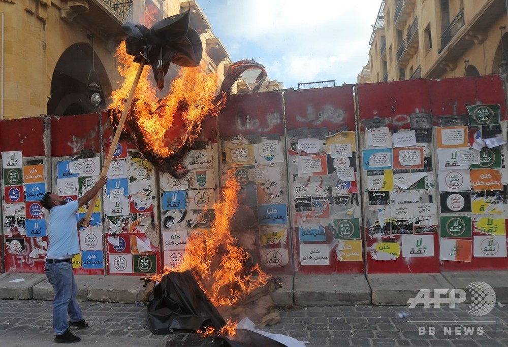 ベイルートの米大使館は8日夜のツイートで、平和的な抗議行動の権利を支持すると述べ、関係者に暴力の自重を呼び掛けた。