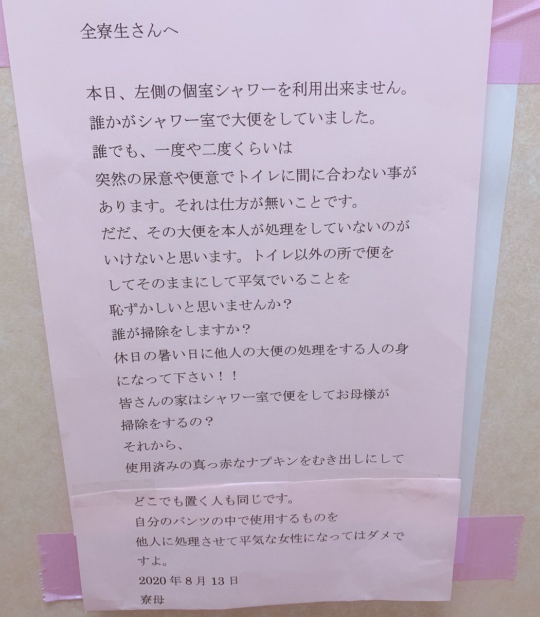 - 寮母のお気持ちが文面から溢れ出てて💮