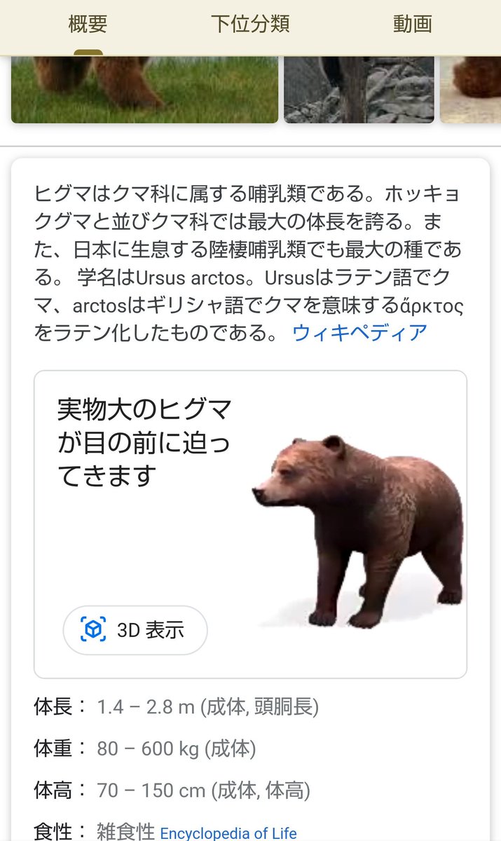 スマホで「ヒグマ」って検索してAR表示したときの絶望感がすごい