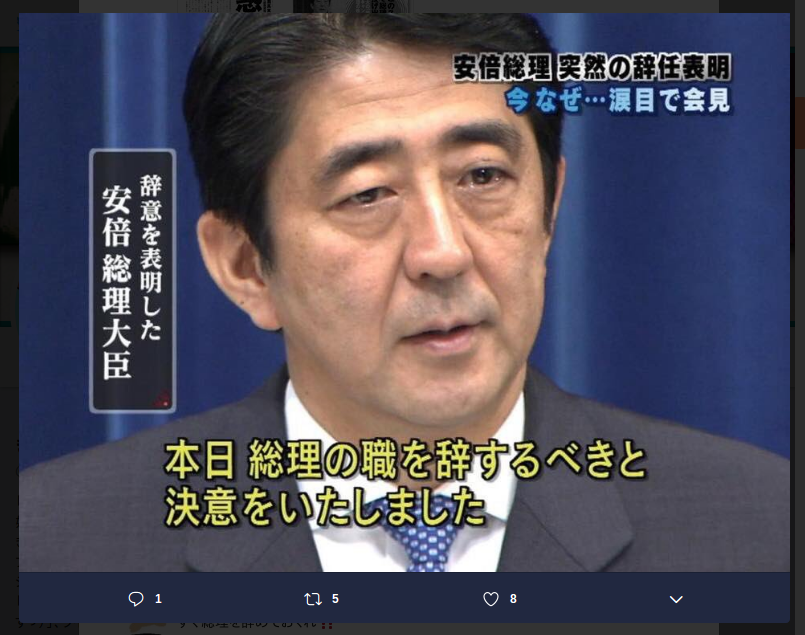 安倍晋三内閣総理大臣 辞任
