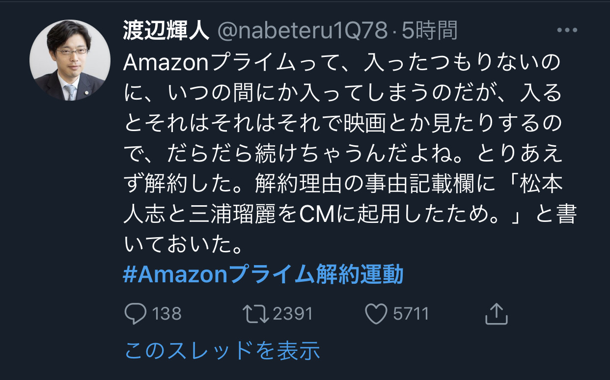 【悲報】弁護士さん、Amazonプライム解約運動に釣られガチでアマプラを解約してしまうwwwwwwwww
