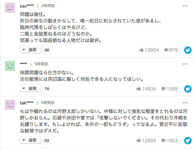 安倍晋三辞任 → ヤフコメ上位「中韓がー!」