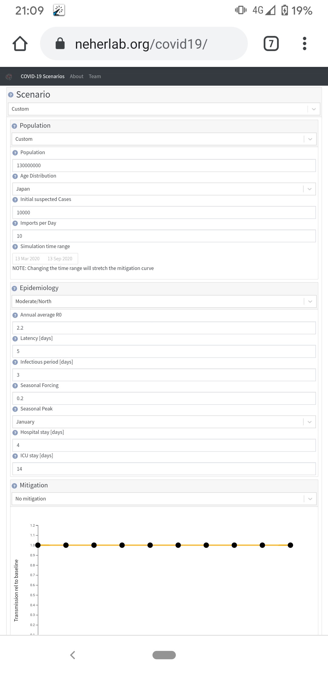 コロナシミュレーターに日本のデータを入れた結果