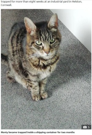 【英】コンテナ内に2か月閉じ込められた猫(モンティ)が生還 クモと結露で生き延びたか…発見時の体重は3分の1