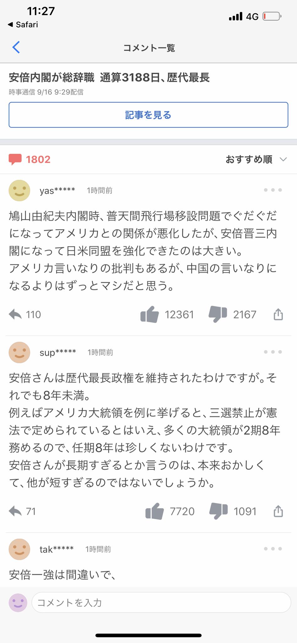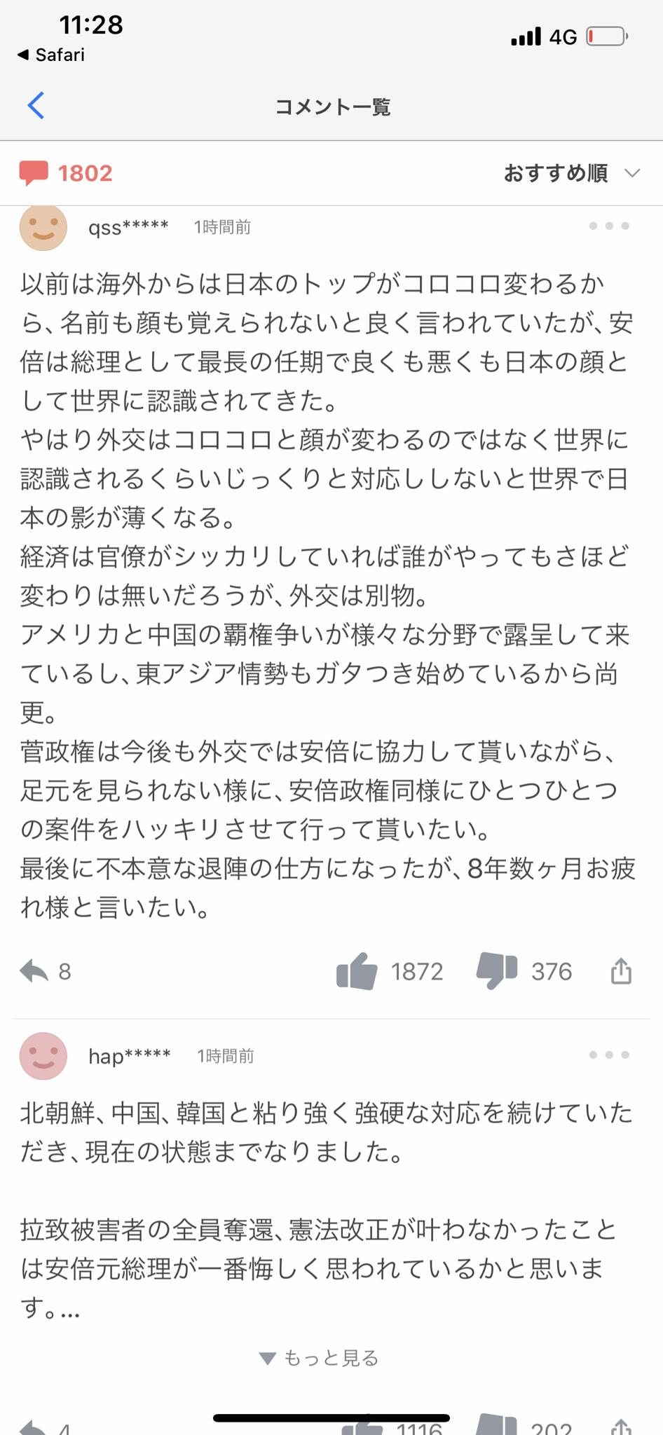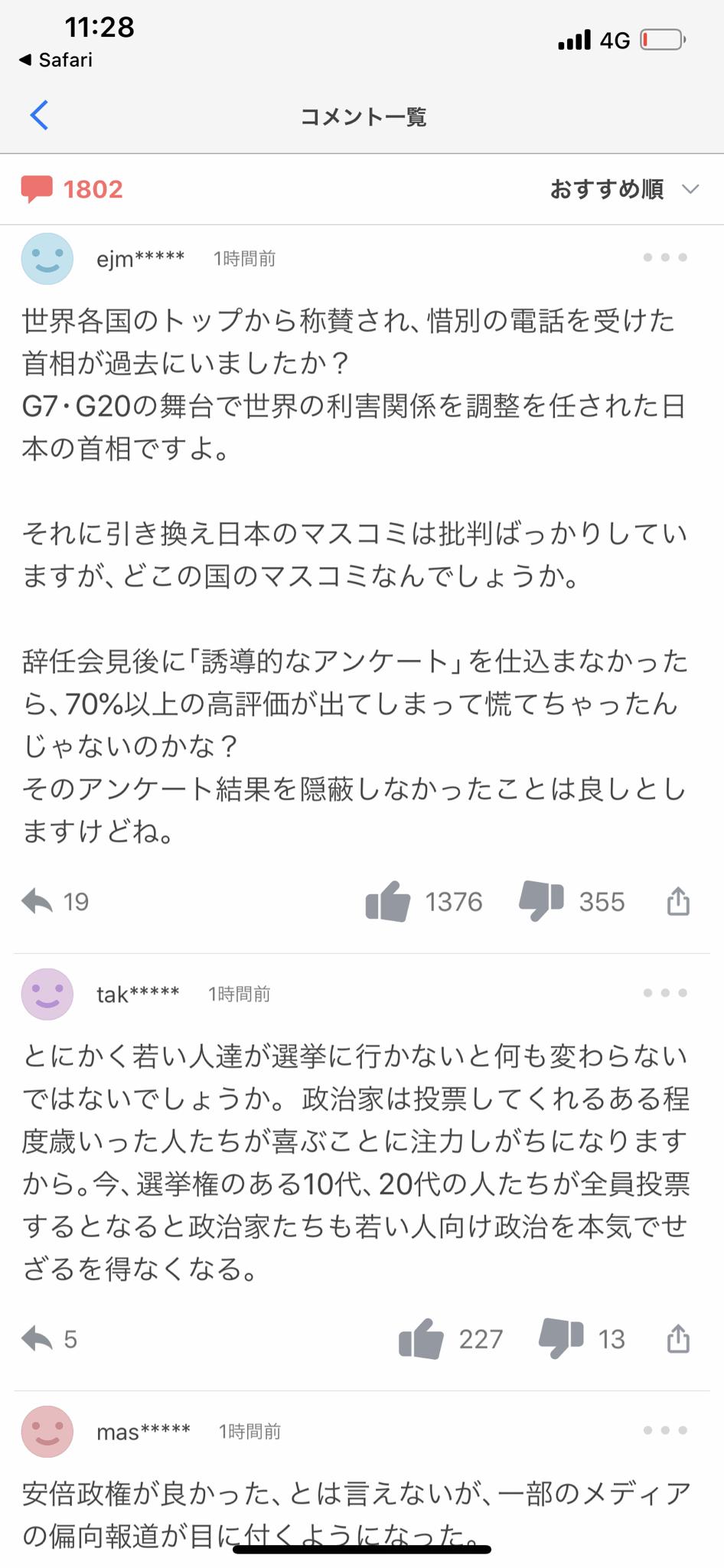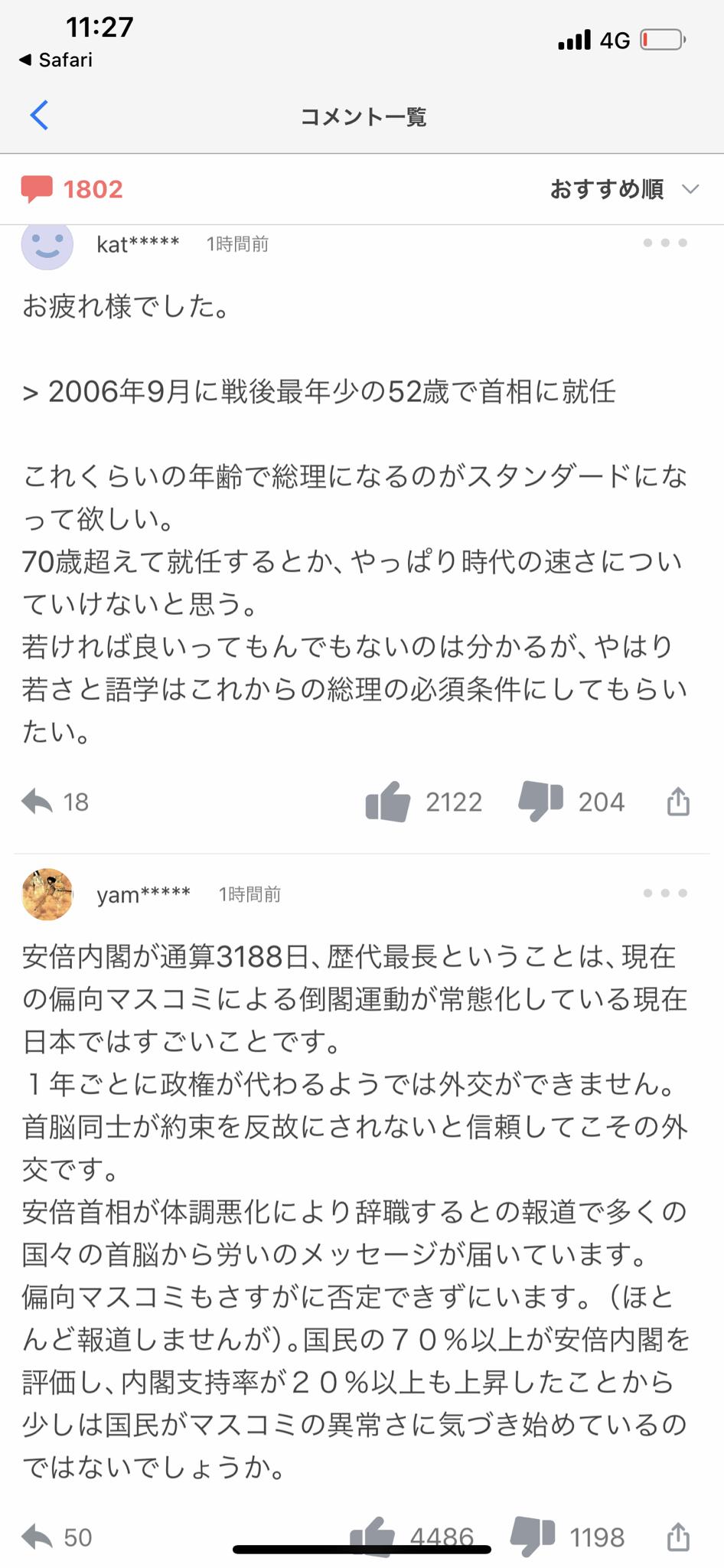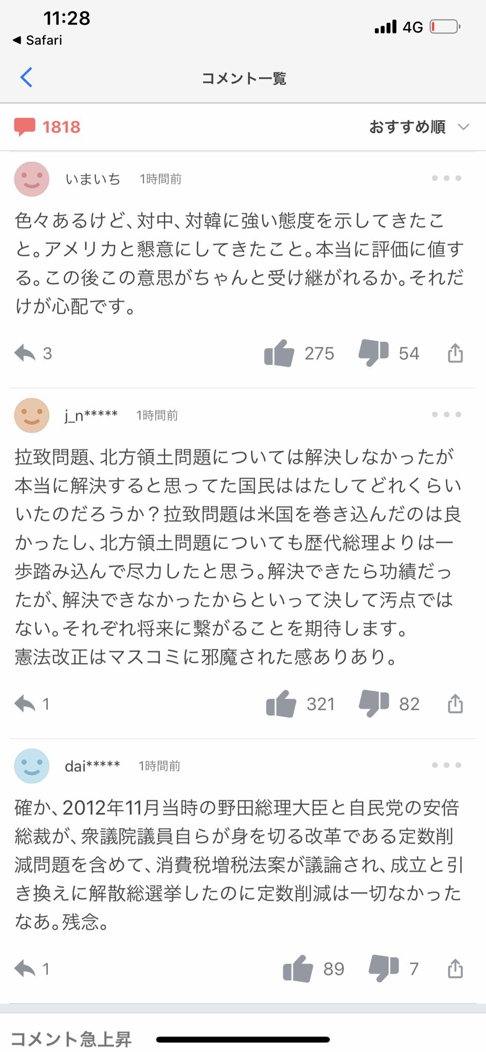 - ヤフコメまで安倍叩いてたんだからやっぱコロナ対策は異常だったんだよなあ