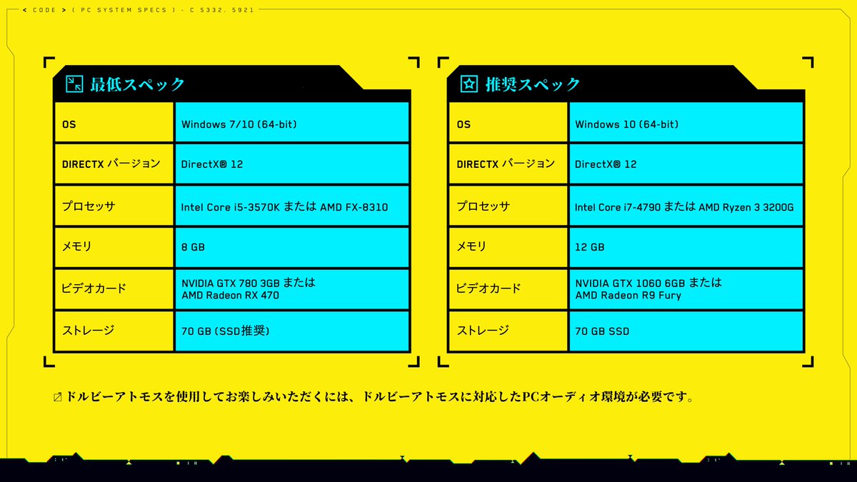 期待の神ゲー「サイバーパンク2077」のPC版最低スペックと奨励スペックが公開。意外とお前らの低スペPCでいけることが判明