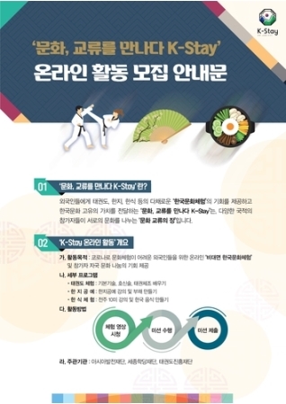 イベントは「文化、交流に出会うK―Stay」と題し、在留外国人にテコンドーや韓紙(韓国の伝統紙)工芸、韓国料理などの伝統文化を体験する機会を提供することで韓国文化の固有の価値を伝える。同時に、さまざまな出身地の参加者が互いの文化を知り、交流できるようにする。