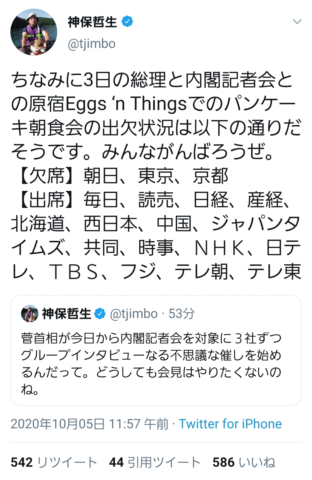 オフレコで実施されたって各社書いてるじゃん - 83 : 2020/10/05(月) 12:54:41.78 ID:yGImbqGzd