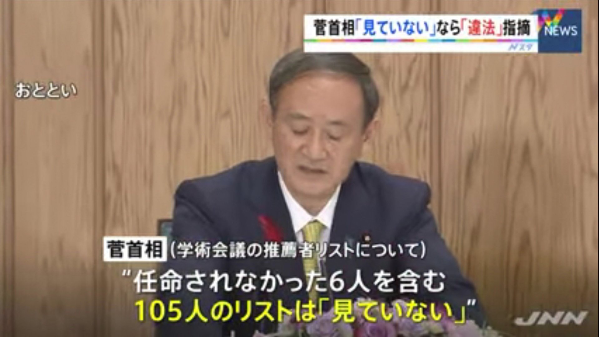 - ワイ総理「学術的な専門知識につき諮問する機関ですので、政治主張を主とする活動をされている方につきまして、その主張内容の如何にかかわらず任命拒否しました。私が105人につき調査する時間は割けないのでその任命方針を示し、そのもとで事務方が6人を外し、私が簡単にその6人について説明を受け、これを承認しました。ただし私が任命すると法定されている以上、その内容には私が責任を負います。」