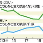 言論NPOによると、2013年の調査開始以降「最悪の水準」という。工藤泰志理事長は元徴用工問題や輸出規制厳格化などを念頭に「政府間の不信の構造がこうした状況を招いた」と指摘。新型コロナウイルスの影響で人的交流が停滞する中、対日感情の悪化が続く恐れがあると警告した。