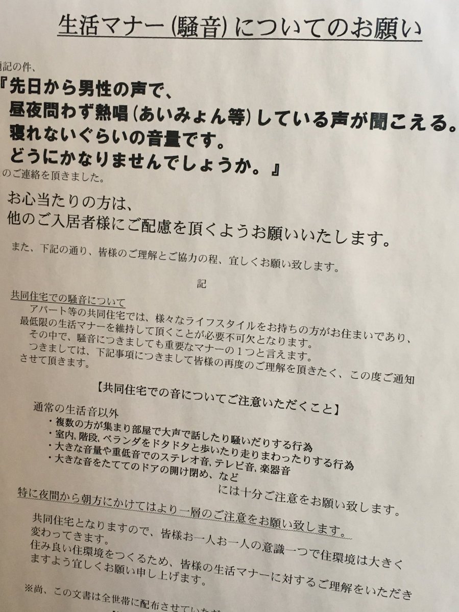 【画像】風呂場で米津玄師のLemonを歌う歌声がうるさいとマンションに張り紙が貼られる