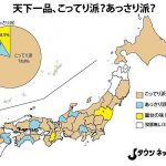 では「あっさり」味はどうだろう。得票率が高かったのは、7地域のみだった。富山(100%)、福井(66.7%)、山梨(100%)、岡山(50%)、高知(100%)、大分(100%)、鹿児島(100%)である。