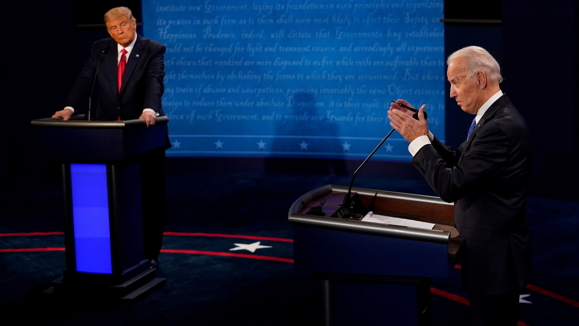 終始穏やかな雰囲気の中で行われた最終討論会。バイデン氏は人格の重要性を強調