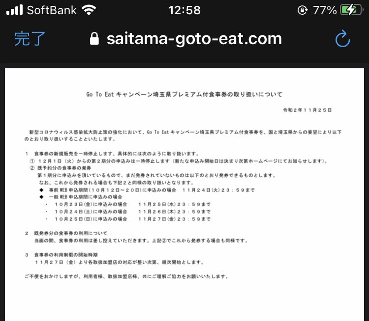 埼玉県のGOTOイート食事券、使用不可、期限延長無しの鬼畜仕様だと話題にwwmjmgmjmjmgmj