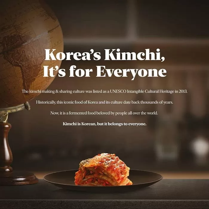 広告には「キムチ文化は2013年にユネスコ人類無形文化遺産に登録された。歴史的に数千年の間、韓国の代表的な食べ物文化となっている」と