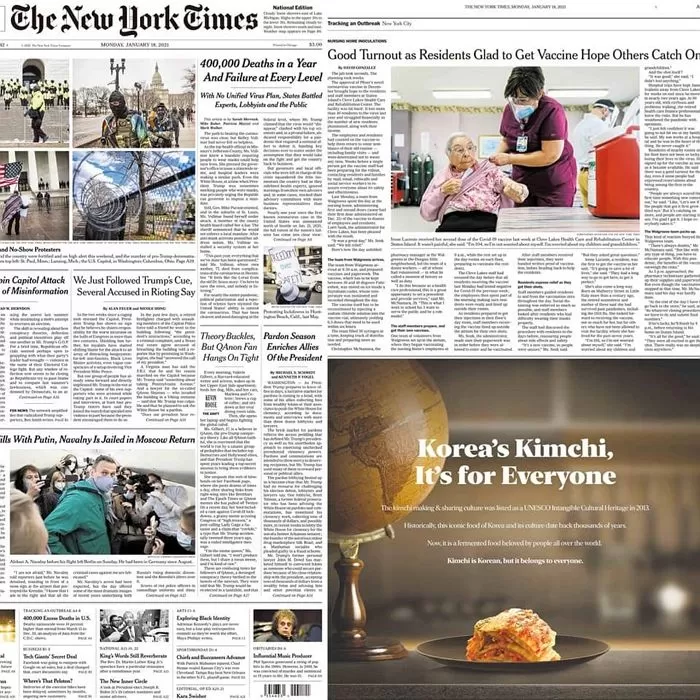「キムチは韓国の物」と主張するためニューヨークタイムズに広告を出す! 「キムチの歴史は数千年」←