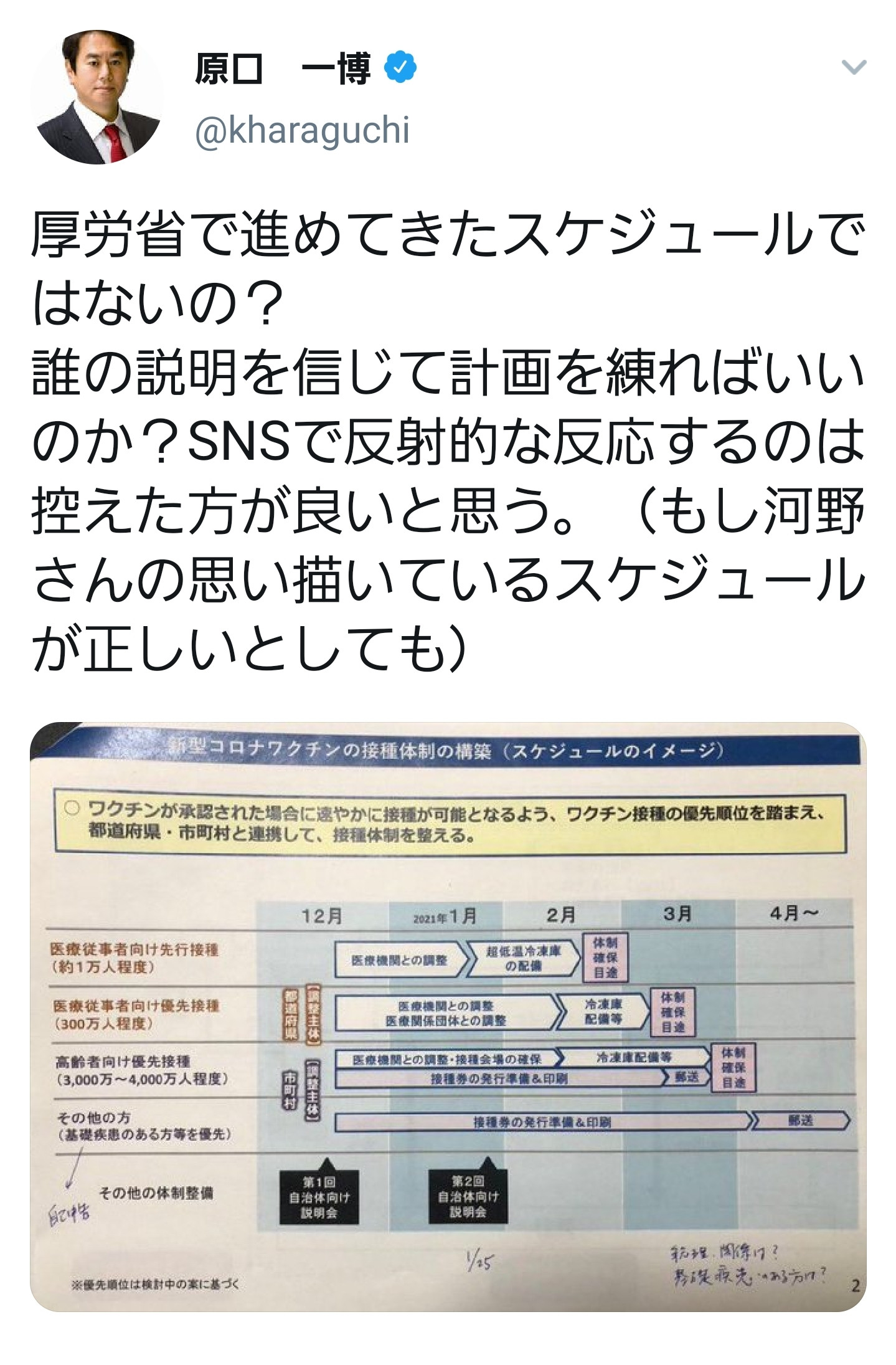 厚労省が予定してるワクチン配布プランすら把握してないワクチン担当大臣ってなんやねん、と
