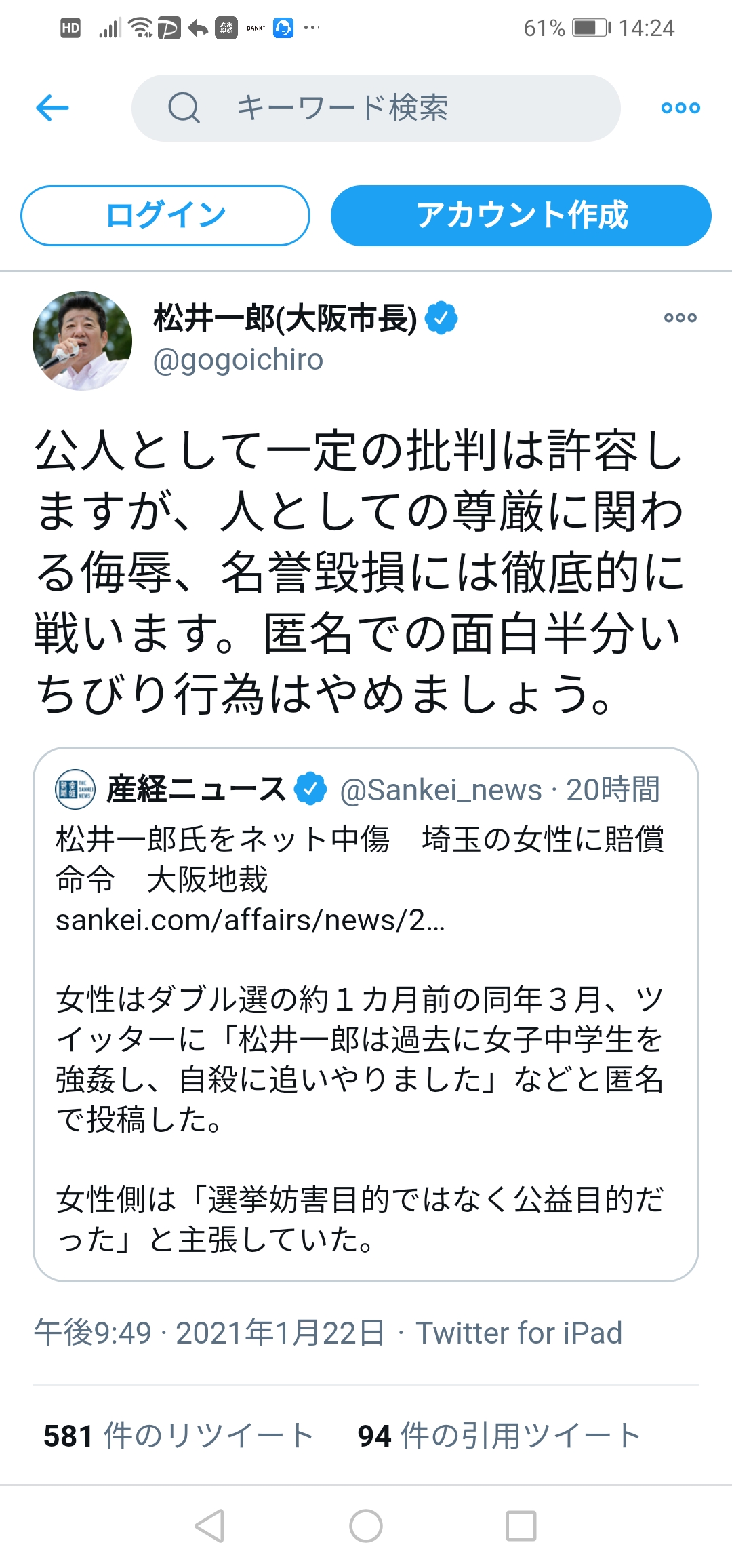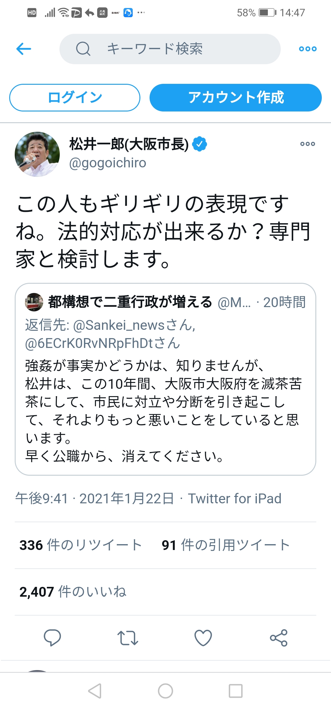 何がギリギリなのかわからんのだがリプ欄を見ると完全アウト!やってやれ!って維新信者だらけだな - 39 : 2021/01/23(土) 15:04:28.29 ID:L+2lSvZY0