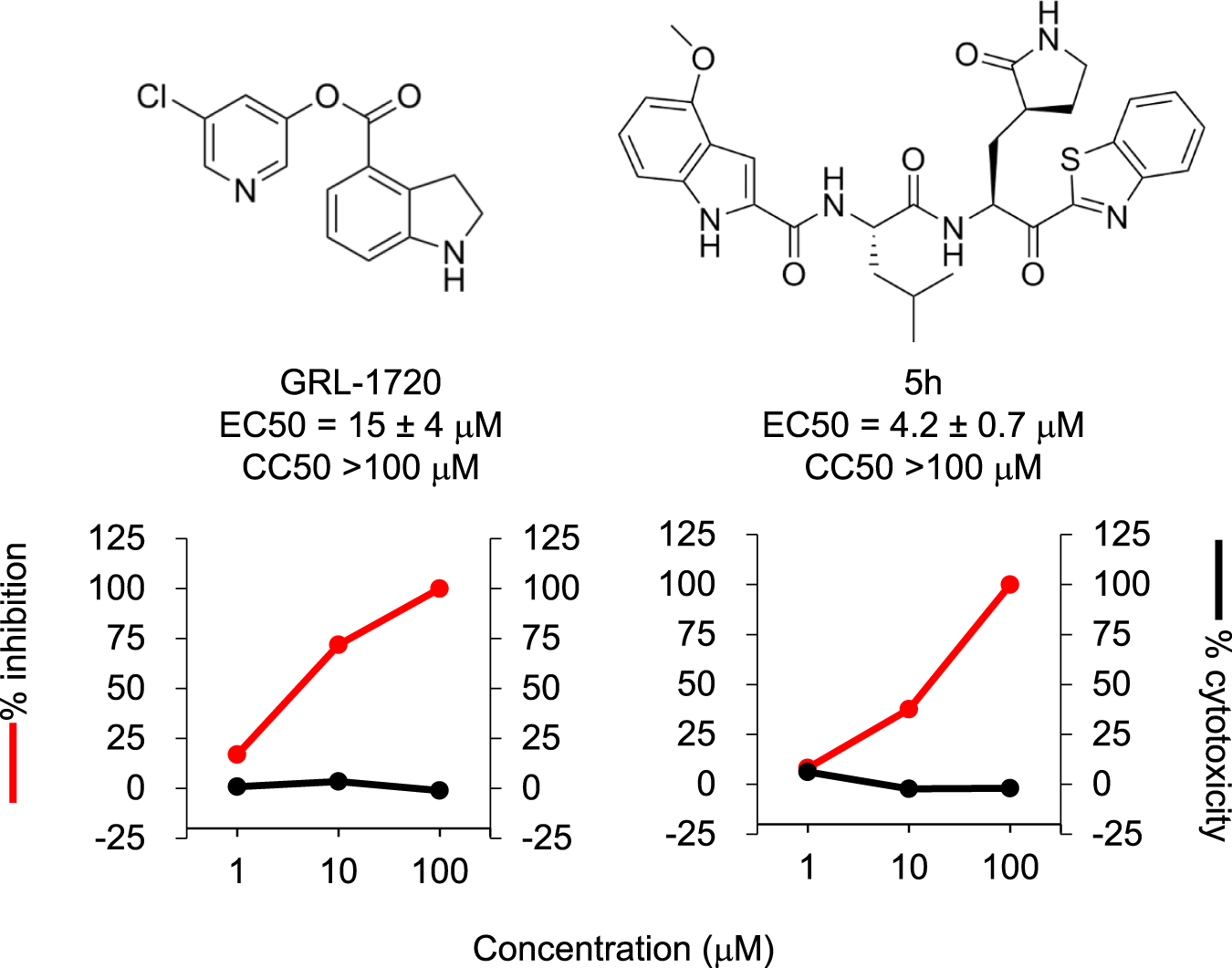 研究の結果、候補として「GRL-1720」「5h」の2つの化合物が浮かび上がった。