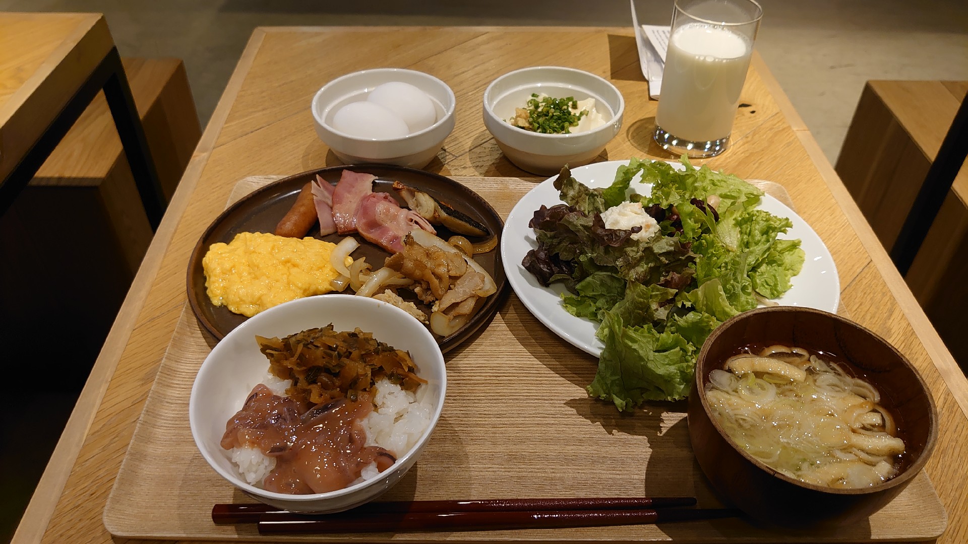 - ホテルの朝食うまいけどつい食いすぎてしまうんよな
