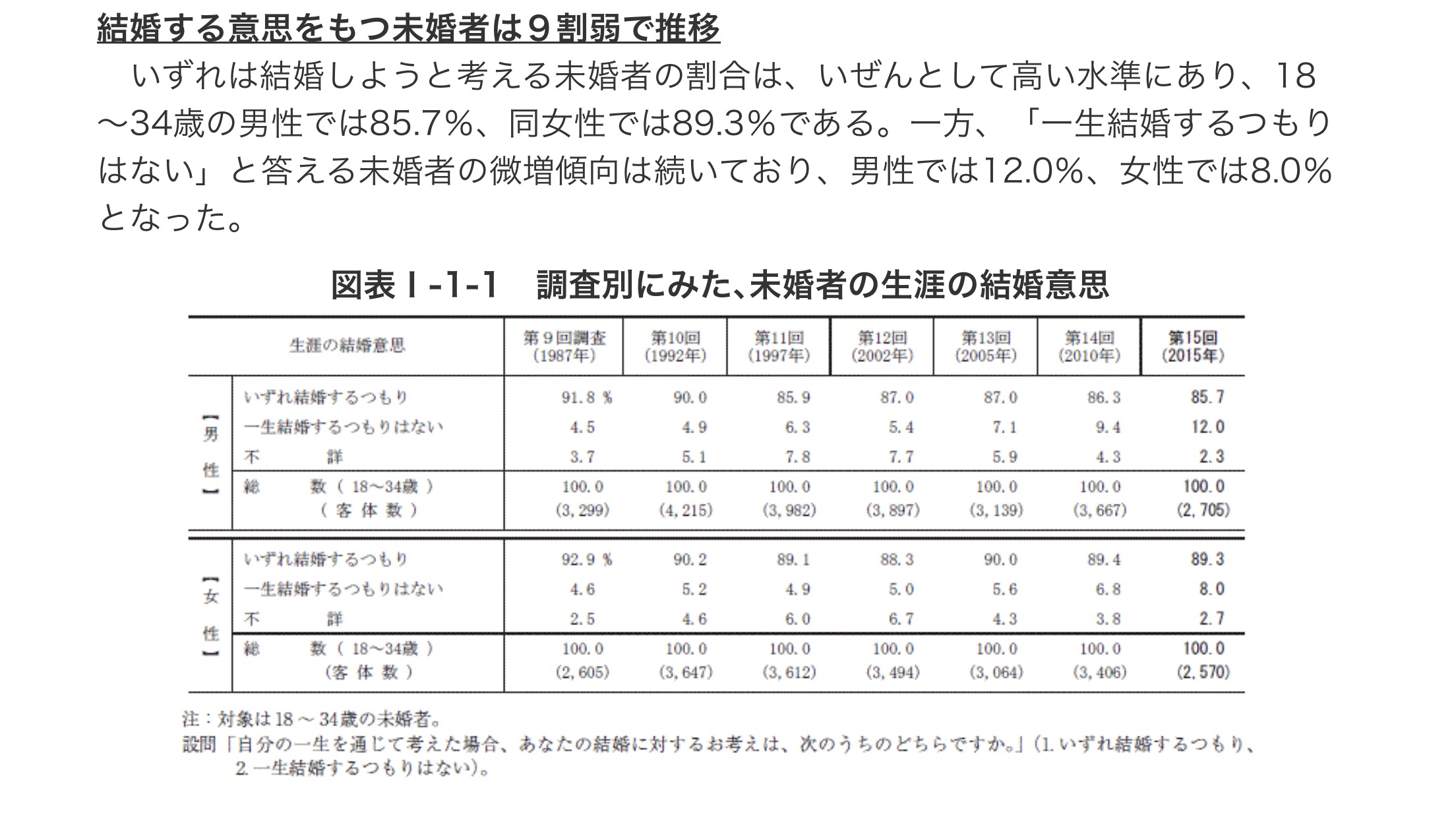1.結婚の意思結婚する意思をもつ未婚者は9割弱で推移