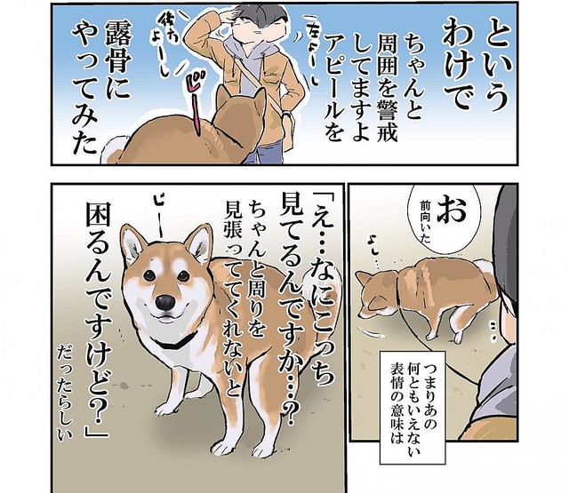 ある日、お散歩仲間と一緒にペットの柴犬の散歩をしていた石原さん。愛犬が用を足そうとしながら「じー」とこちらを見つめる姿を見て、ふと、
