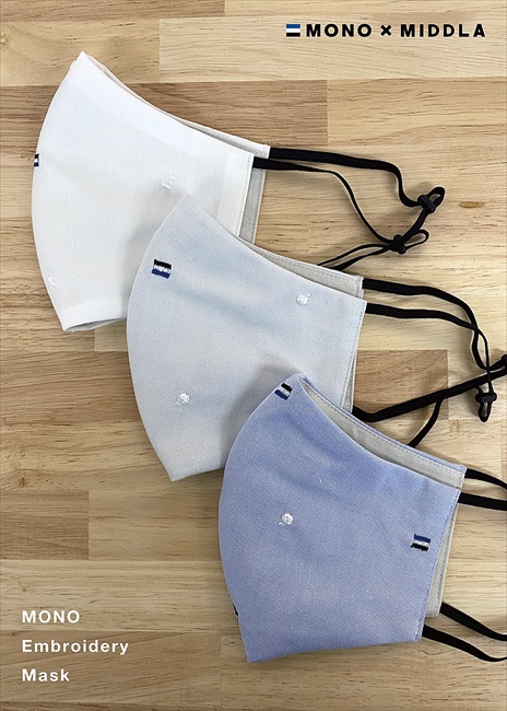 ラインアップは「MONO EMBROIDERY(刺繍) MASK」(全3色)と「MONO STRIPE(ストライプ) MASK」(全2色)。製品の企画、製造、販売はアルディムが行なう。発送は2月19日から。
