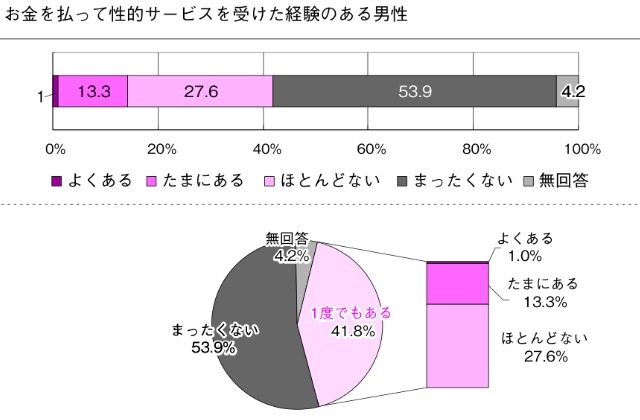 (住民基本台帳による無作為抽出、回収率 23.8%)男性の約4割が性的サービスを買った経験あり