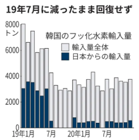【悲報】安倍の経済制裁により被害を受けた韓国へのフッ化水素輸出、未だ回復せず