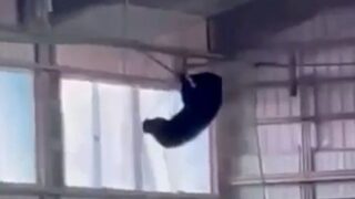 ニュー速+【動画】東海大山形の野球部室内練習場にクマ ネットにぶらさがる