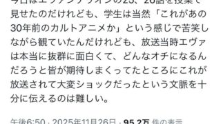 嫌儲『エヴァンゲリオン』を観た大学生、「これが30年前のカルトアニメですかw」と冷笑してしまう…