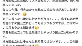 嫌儲女「息子が私大に補欠合格してたけど言わなくて良い?もう公立大の入学金払ったし…」