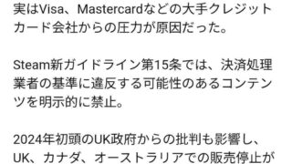 なんGSteam、クレカ会社からの圧力で成人向けゲームを一部削除へ