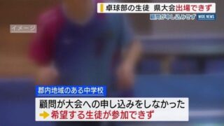 「絶対うそやー」「いややっ」卓球部顧問が申し込みをしなかったことで生徒らが山梨県の選手権大会に出場できず