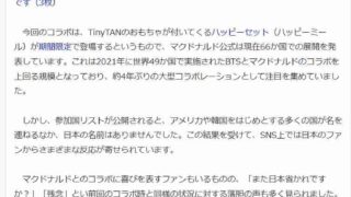 嫌儲マクドナルド、ポケカの転売批判でうるせえからBTS全世界コラボ日本だけ除外しまーす